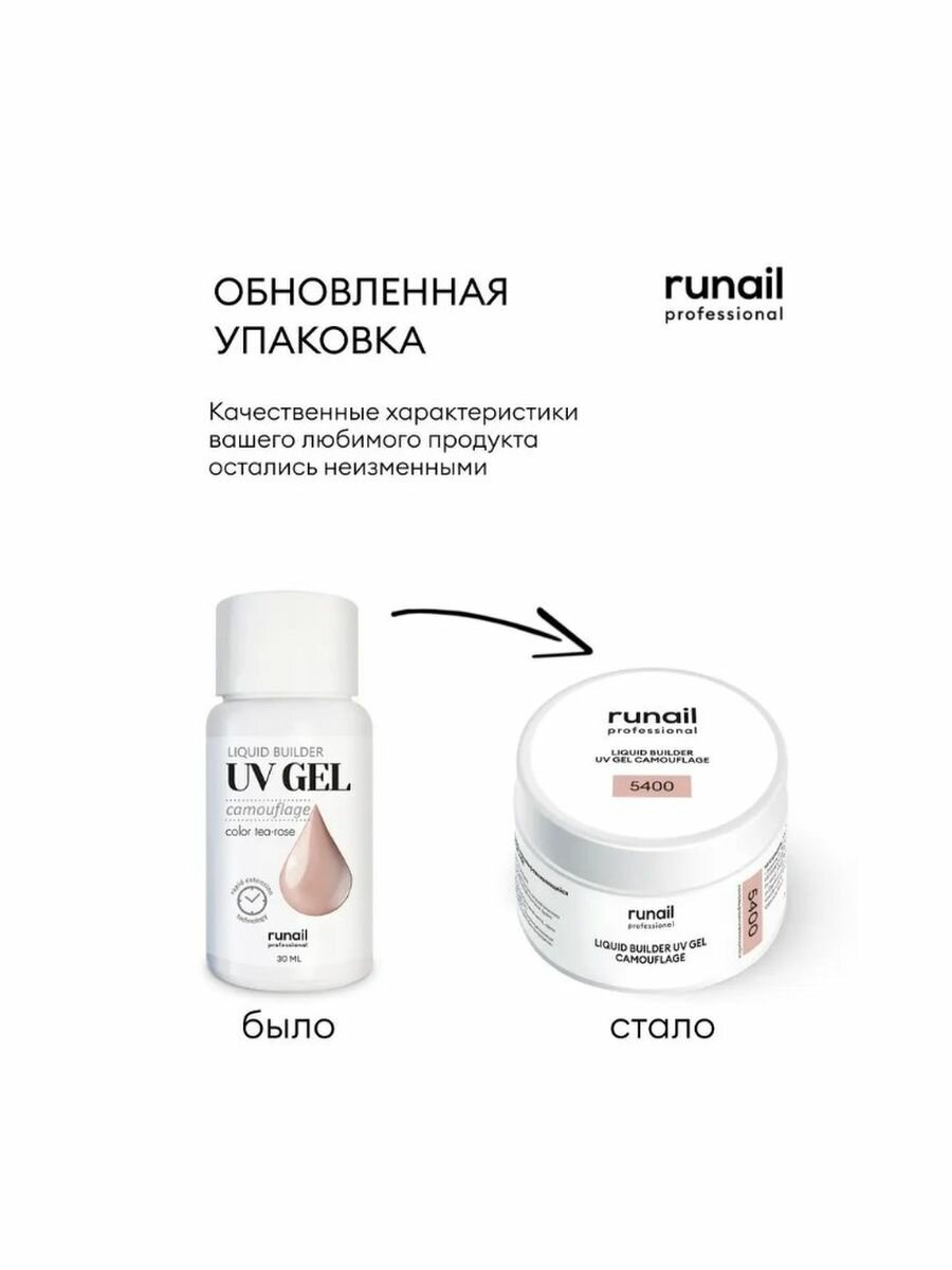 RUNAIL, Камуфлирующий жидкий Уф-гель (цвет: Нежный лепесток) №5399, 30 мл