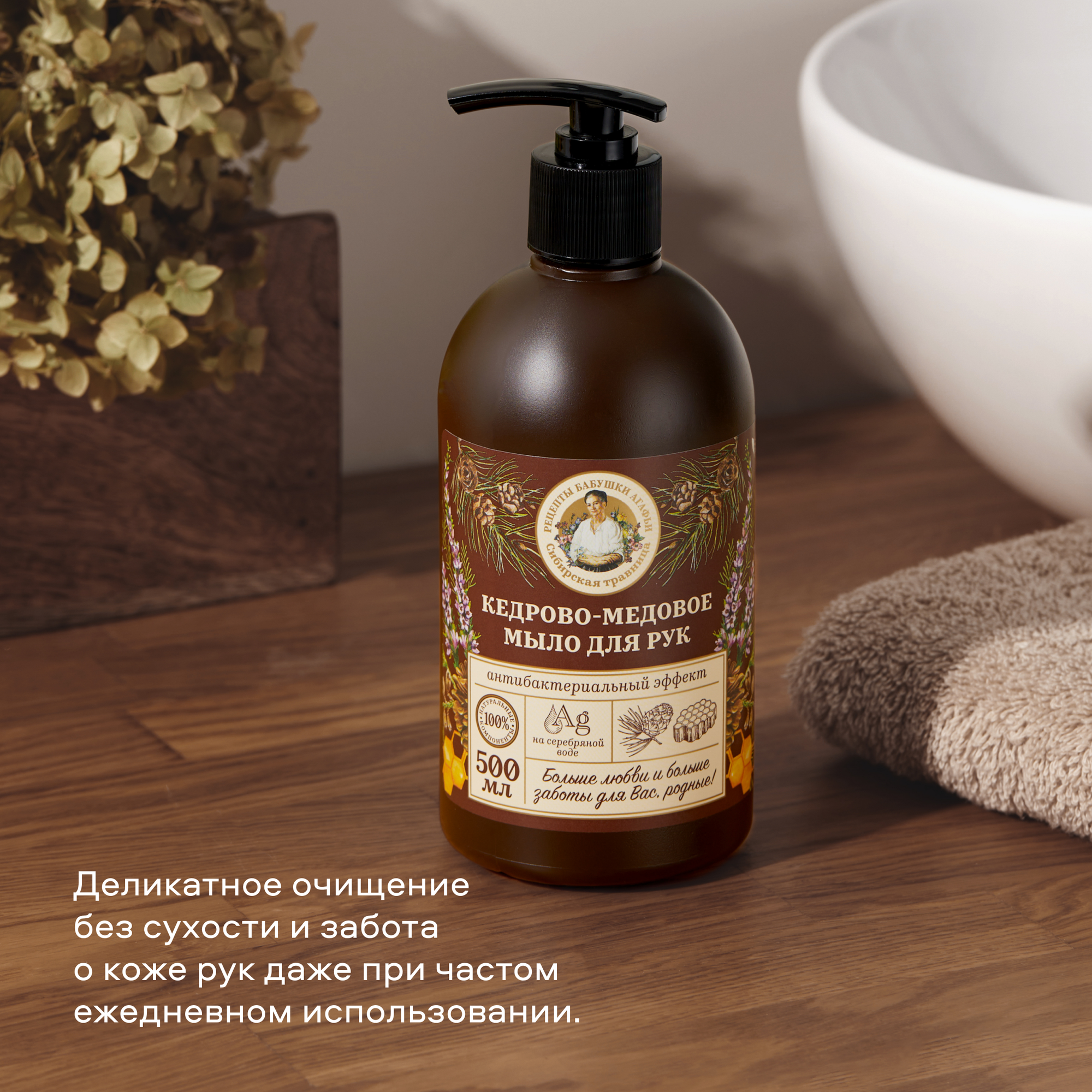 Купить Жидкое мыло для рук Рецепты бабушки Агафьи "Кедрово-медовое" антибактериальное на серебряной воде 500 мл