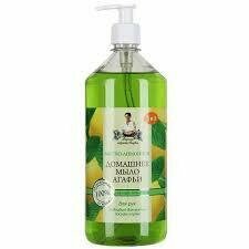Мыло жидкое Рецепты бабушки Агафьи для рук, домашнее, на мыльном корне, Мятно-лимонное, 1 л