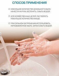 | Способ применения | небольшое количество домашнего мыла нанести на руки, вспенить, смыть водой |