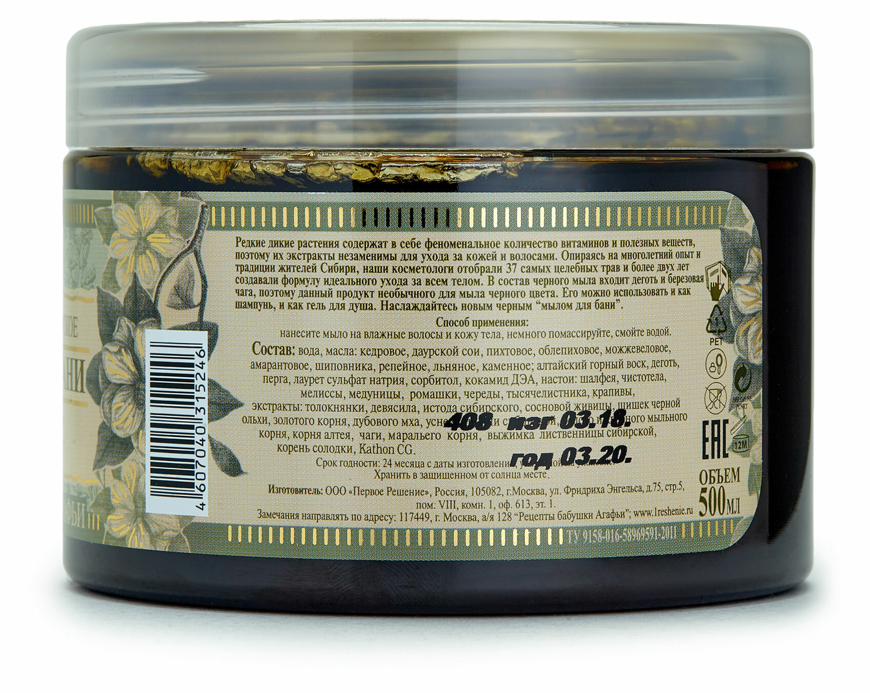 Купить Мыло для бани "Чёрное мыло Агафьи" 500 мл