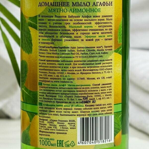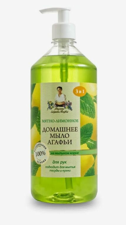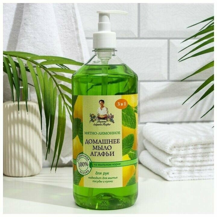 Мыло жидкое рецепты бабушки агафьи Домашнее Мятно-лимонное, 1л - 3 шт.