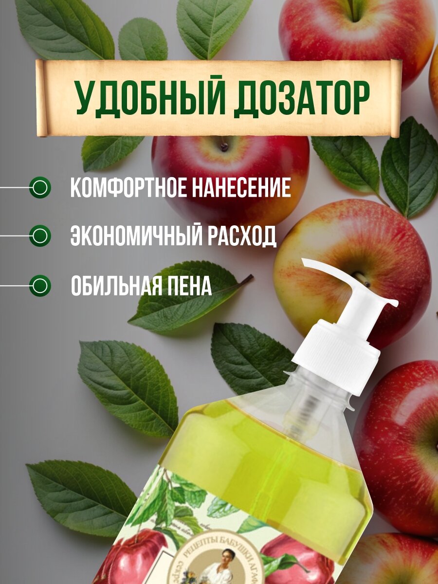 Рецепты бабушки Агафьи Домашнее Мятно-яблочное Жидкое мыло для кухни, мытья посуды и рук 1 литр