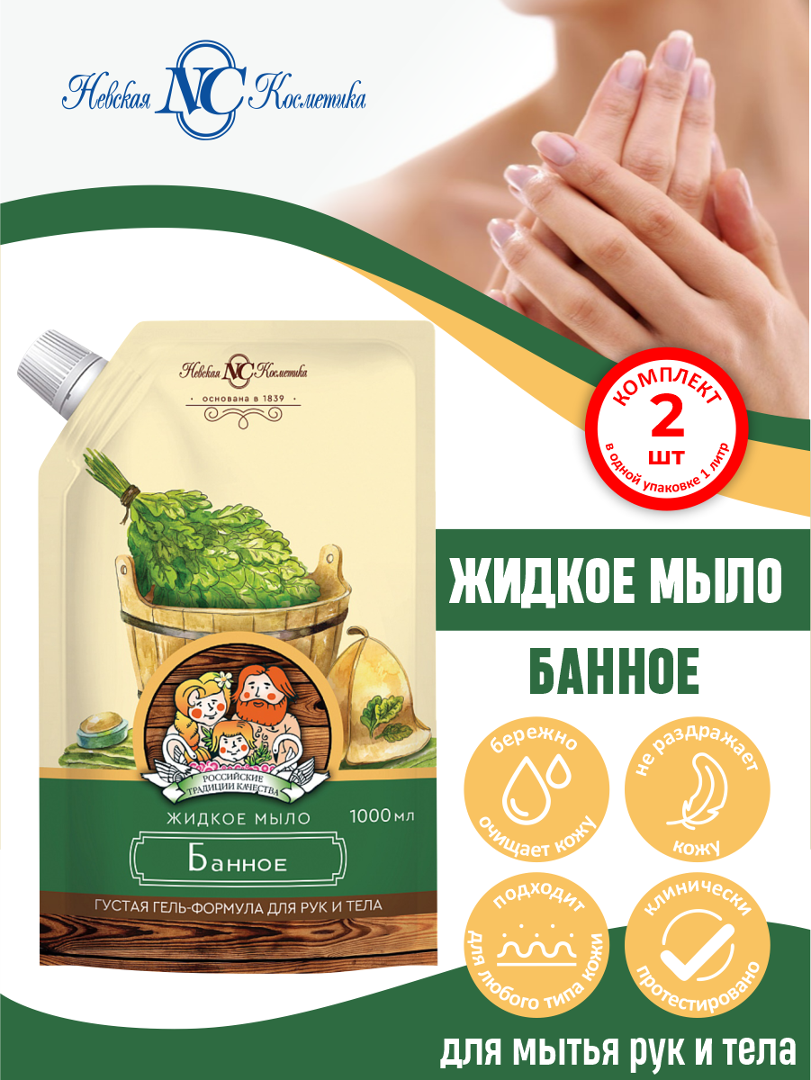 Невская косметика Жидкое мыло Банное, 1000 мл, 2 шт