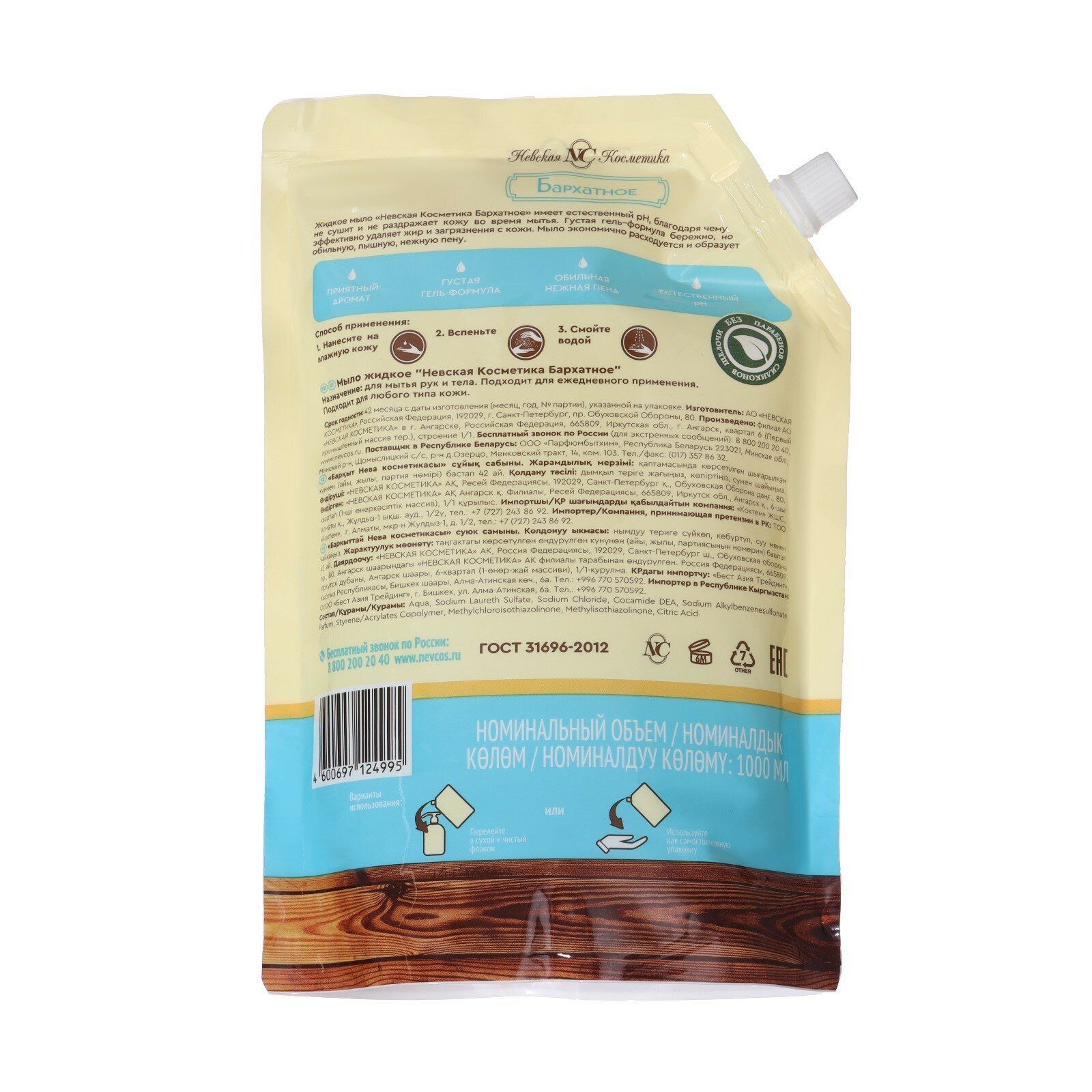 Жидкое мыло Невская Косметика Бархатное дой-пак 1 литр