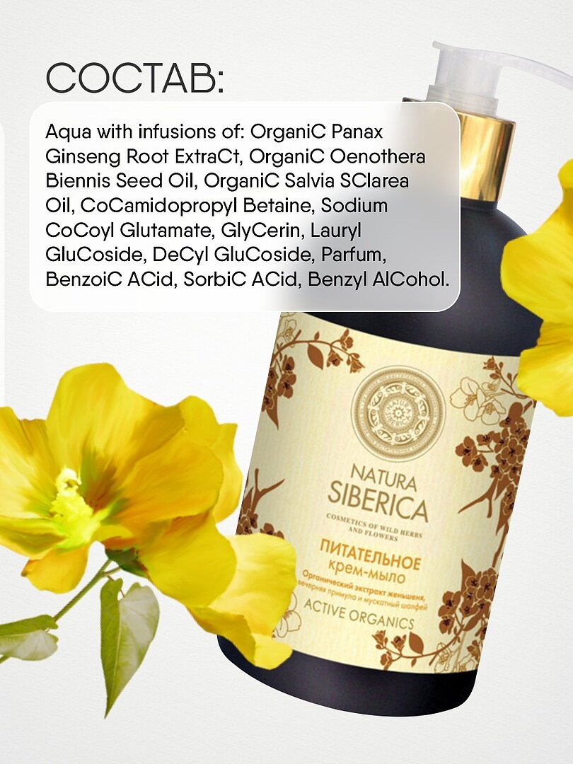Жидкое крем мыло для рук Natura Siberica питательное с экстрактами женьшеня, вечерней примулы и шалфея 500 мл интересное: