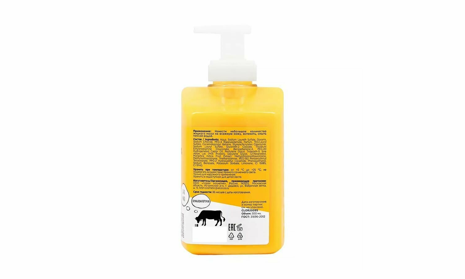 | Состав | Aqua, Sodium Laureth Sulfate, Cocamidopropyl Betaine, Sodium Chloride, Disodium Cocoamphodiacetate, Glycerin, Coco Glucoside, Glyceryl Oleate, Citrus Aurantium Dulcis Fruit Extract, Citrus Grandis Fruit Extract, Prunus Persica Fruit Extract, Sodium Ascorbyl Phosphate, Parfum, Linalool, Limonene, Polyquaternium-7, Tetrasodium EDTA, Styrene/Acrylates Copolymer, Benzyl Alcohol, Phenoxyethanol, Methylchloroisothiazolinone, Methylisothiazolinone, Sodium Benzoate, Potassium Sorbate , Propanediol |