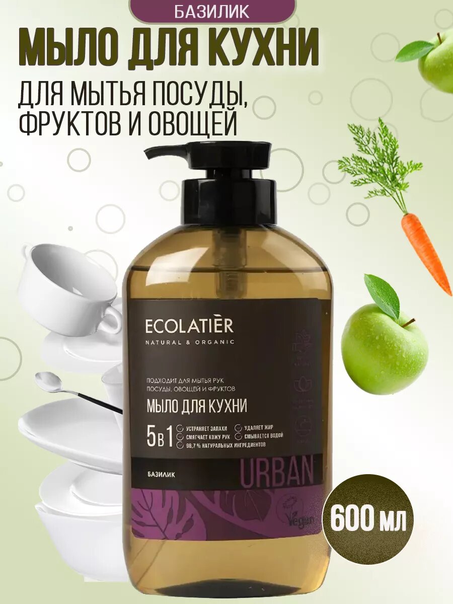 Купить Ecolatier Жидкое кухонное мыло для мытья рук, посуды, овощей, фруктов Базилик 600 мл
