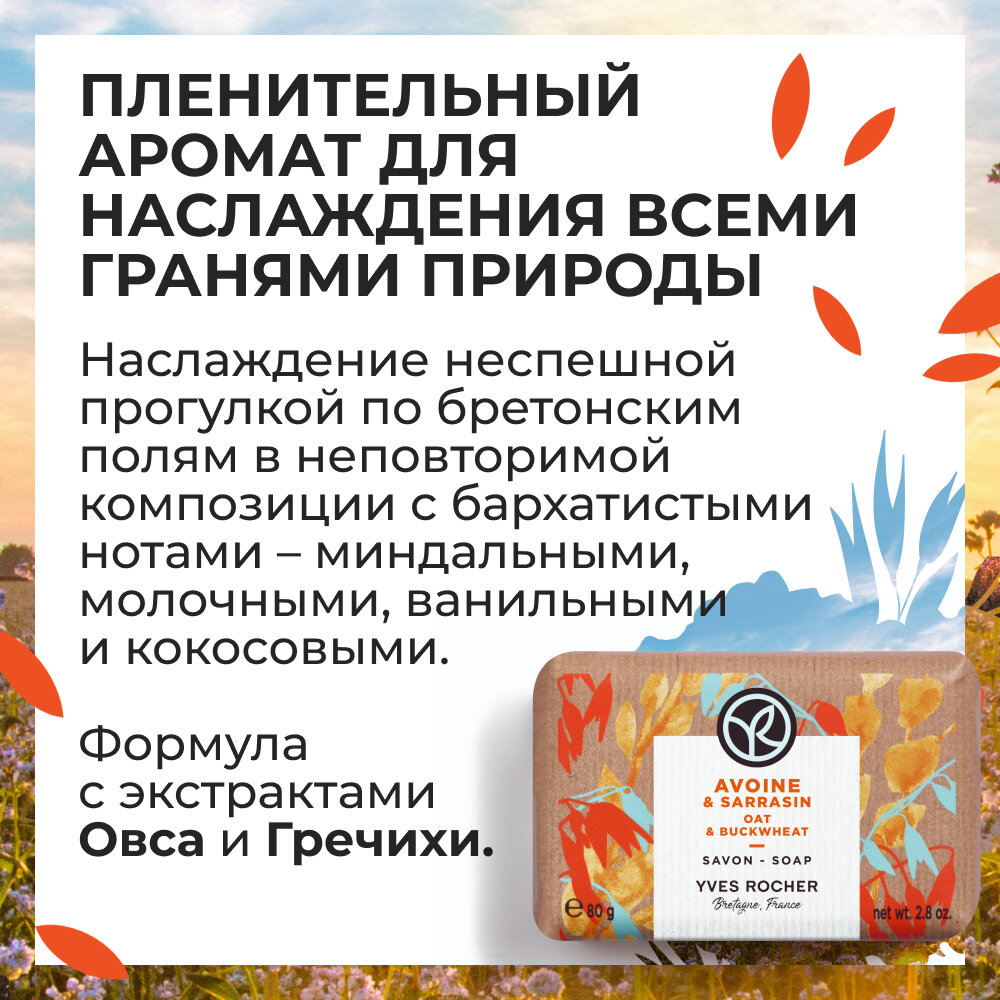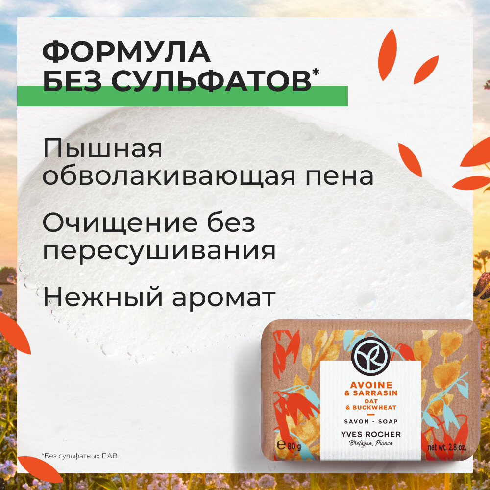 Купить Yves Rocher Твердое мыло для душа "Овес и гречиха" 80г