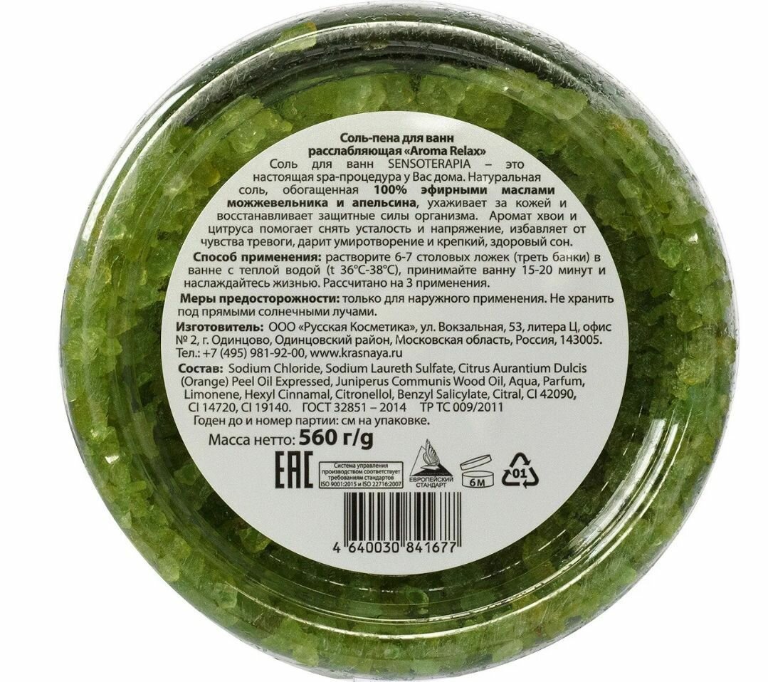 Купить Senso Terapia Соль-пена для ванн Aroma Relax, 560 г, 2 штуки