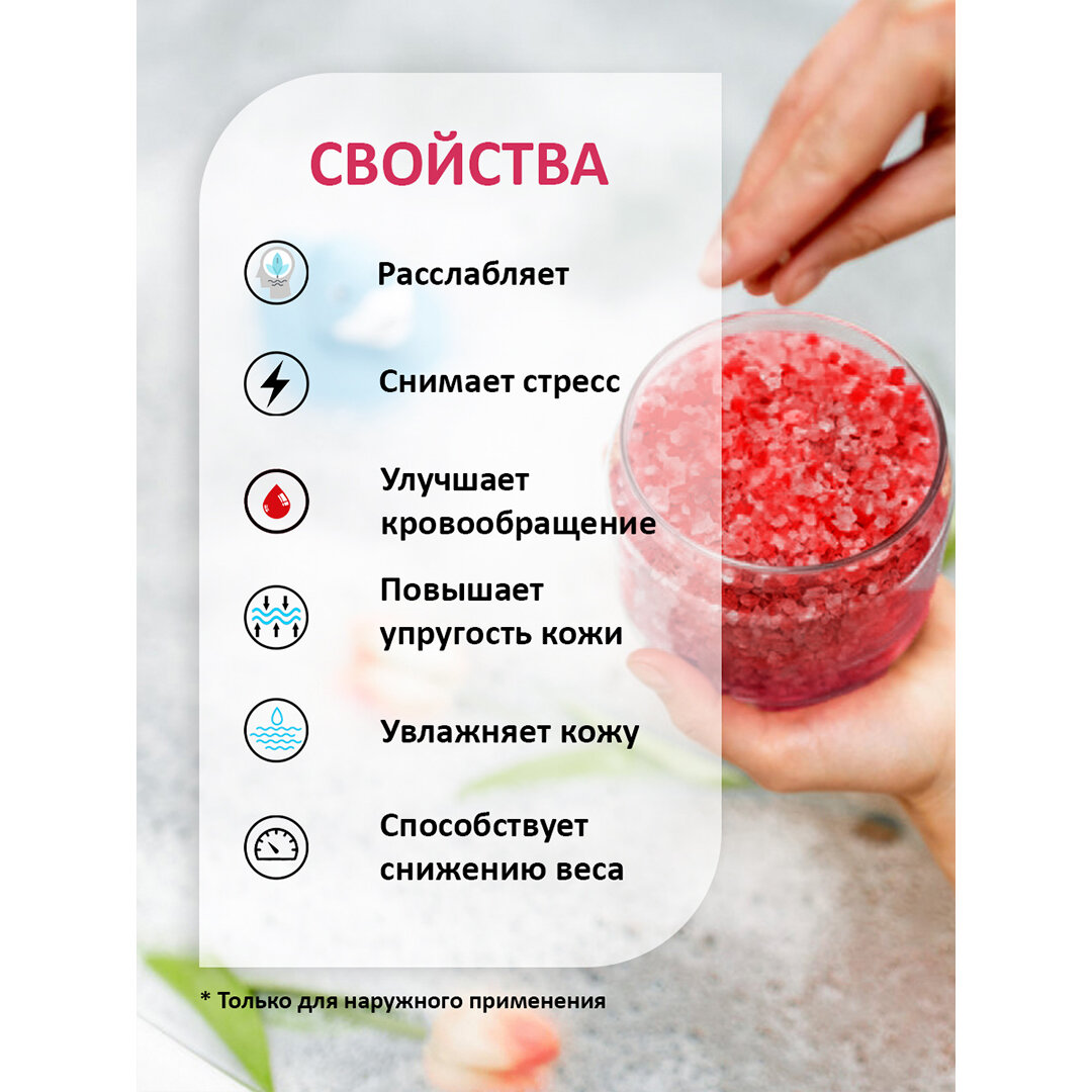 | Способ применения | растворите 175 г соли (треть банки) в ванне с теплой водой (t 36°С-38°С), принимайте ванну 15-20 минут. Рассчитано на 3 применения |