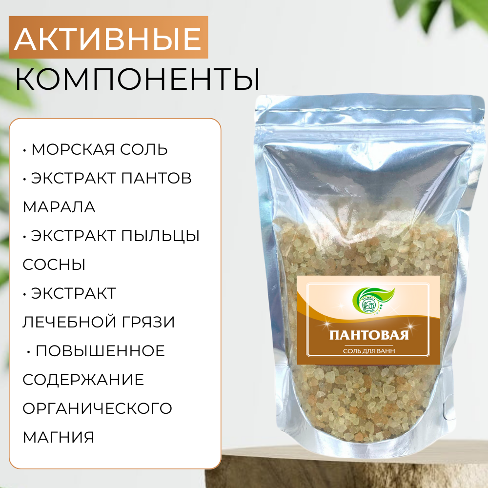 Тонус+ Натуральная пантовая соль для ванны, морская соль с экстрактом пантов марала для принятия ванн, магниевая соль для ванн 500 гр.