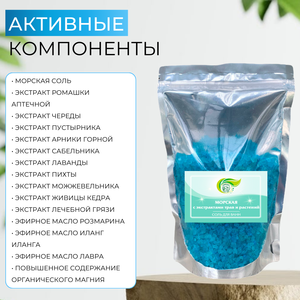 Тонус+ Морская соль с экстрактами трав и растений для принятия успокаивающих ванн 500 гр.