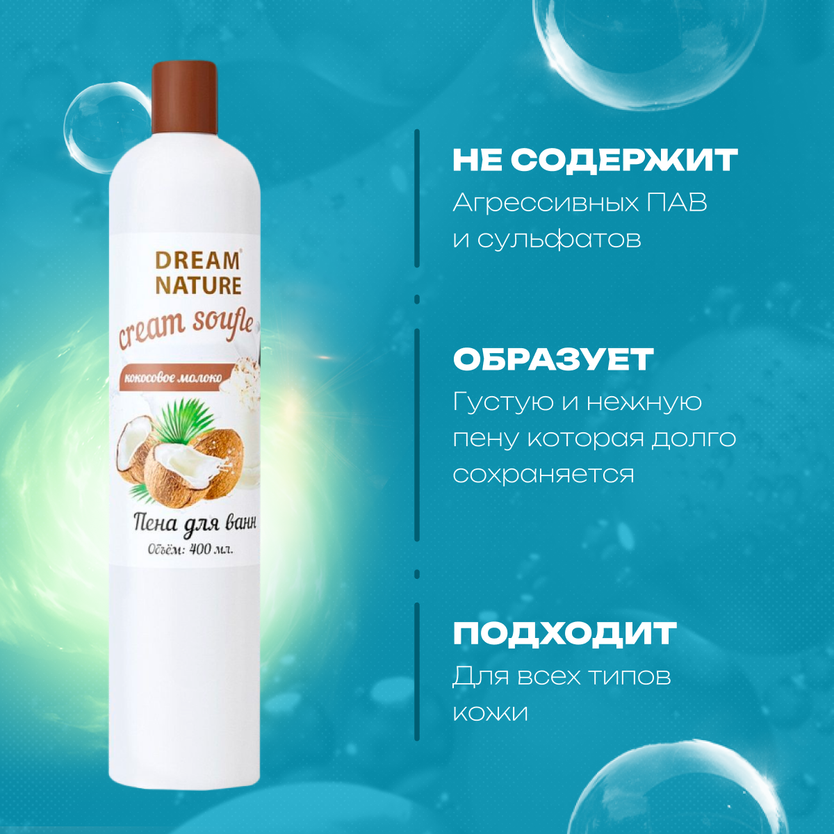 DREAM NATURE Пена для ванн Кокосовое молоко, 400 мл, 3 шт