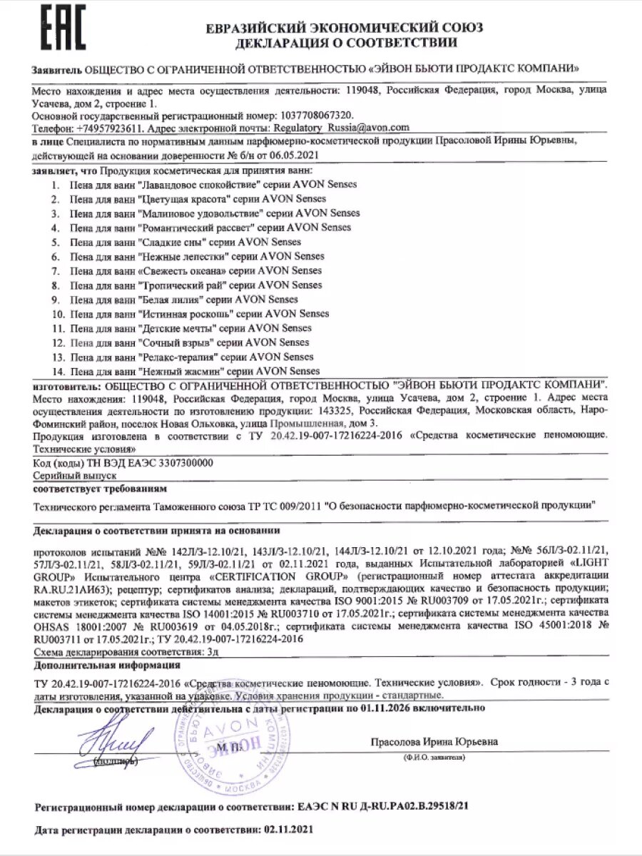 AVON/Эйвон Пена для ванн Senses (Сенсес) "Истинная роскошь", 1000мл