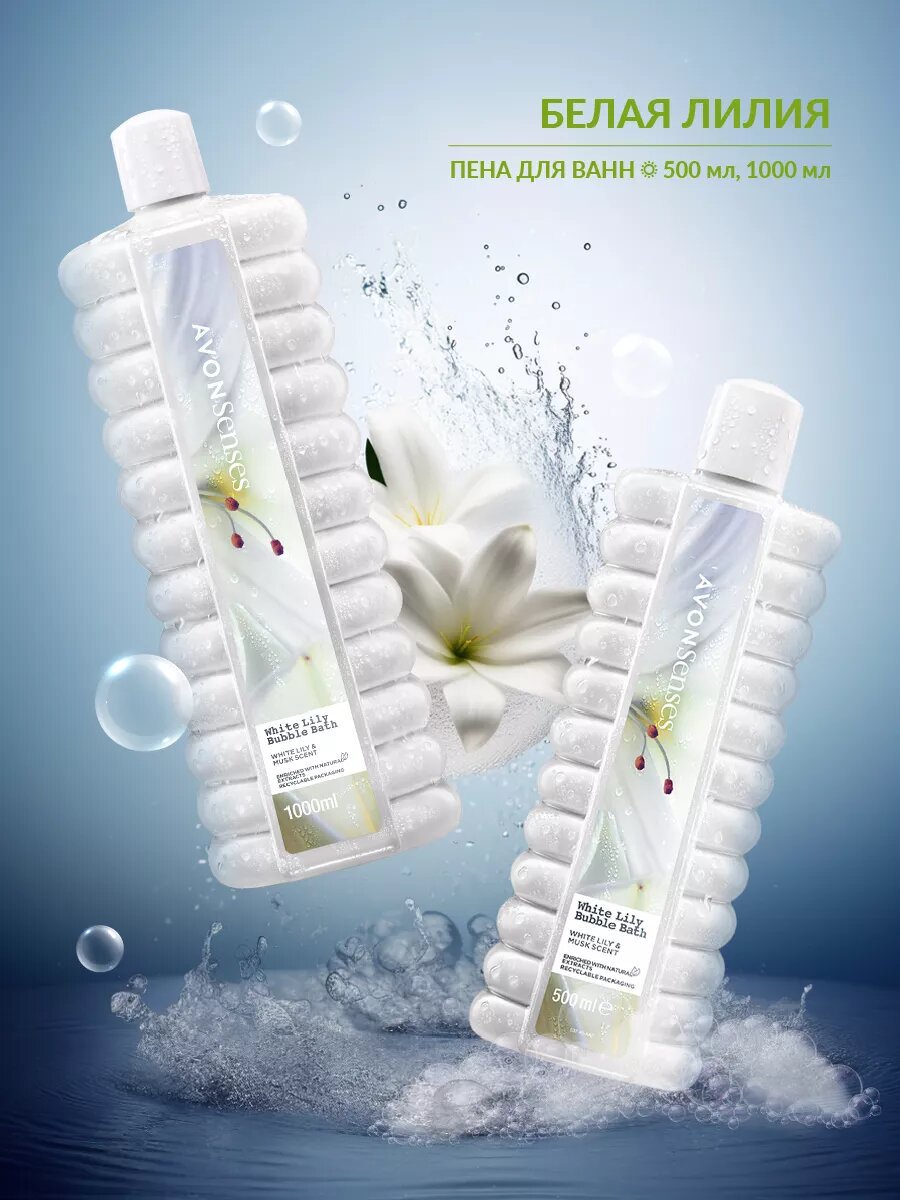 AVON/Эйвон Пена для ванн Senses (Сенсес) "Белая лилия", 1000мл