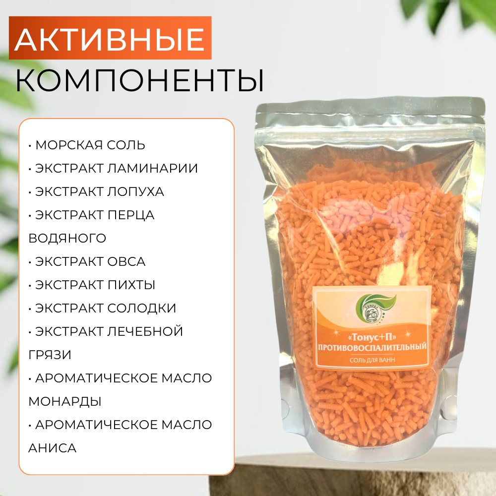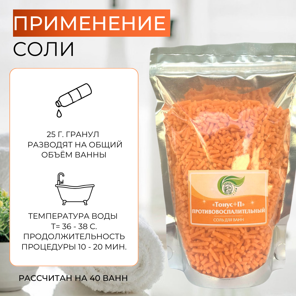Тонус+ Морская соль для ванны гранулированная для снятия воспалений и напряжения, 25 гр. гранул на ванну.