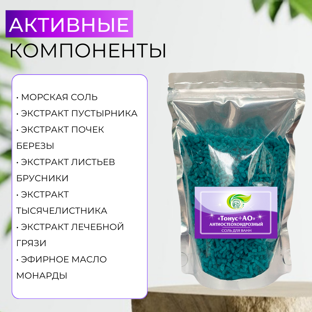 Тонус+ Морская гранулированная соль для ванны при остеохондрозе, боли в суставах, спине, 25 гр. гранул на ванну