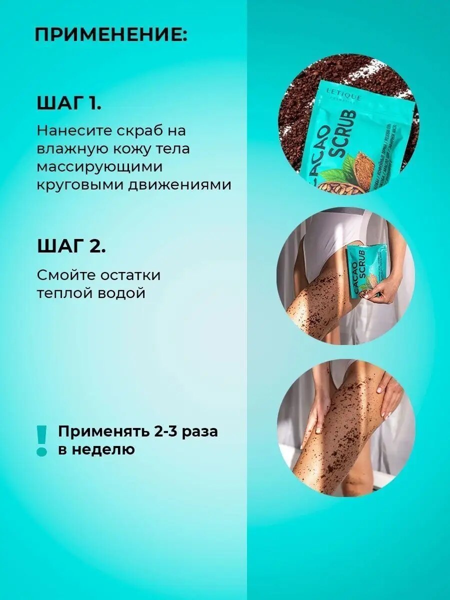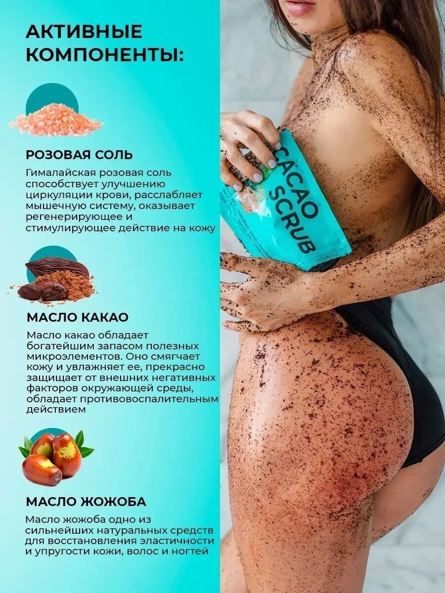 | Способ применения | Нанесите скраб на увлажненное тело, желательно после ванны или душа, когда кожа слегка распарена. Помассируйте зону нанесения круговыми движениями, уделяя особое внимание проблемным местам. После этого смойте остатки скраба теплой водой и промокните кожу полотенцем. |