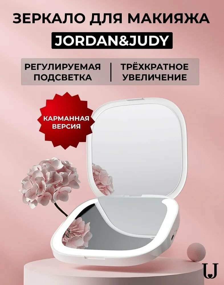 Карманное зеркало для макияжа с подсветкой и увеличением Jordan&Judy LED Makeup Mirror M18 (русская версия)