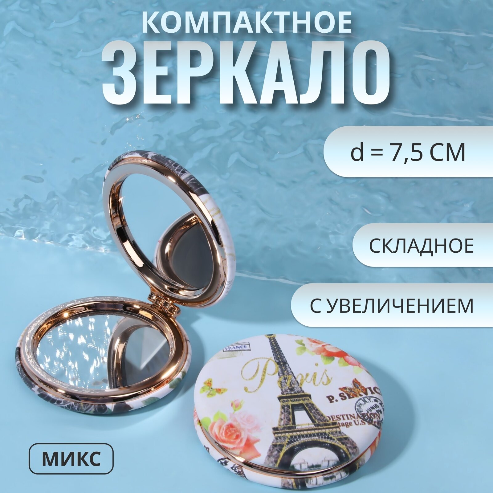 Зеркало складное «Париж», d 7,5 см, с увеличением, искусственная кожа, рисунок микс