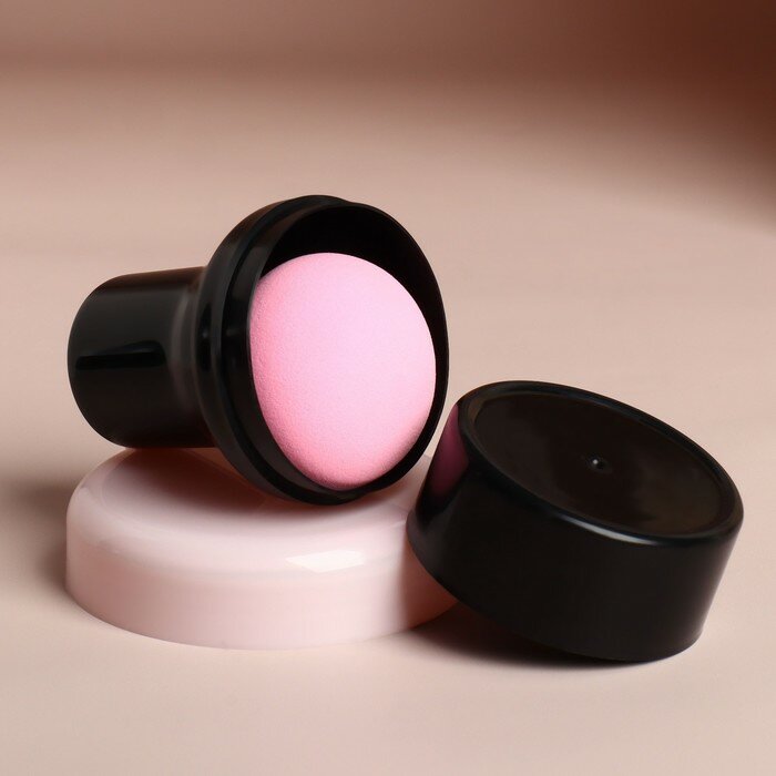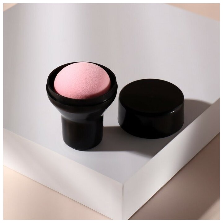 Купить Спонж д/макияжа с ручкой d4,1*3см/4,5*6,5см пласт футл чёрн/роз пакет QF 7621102