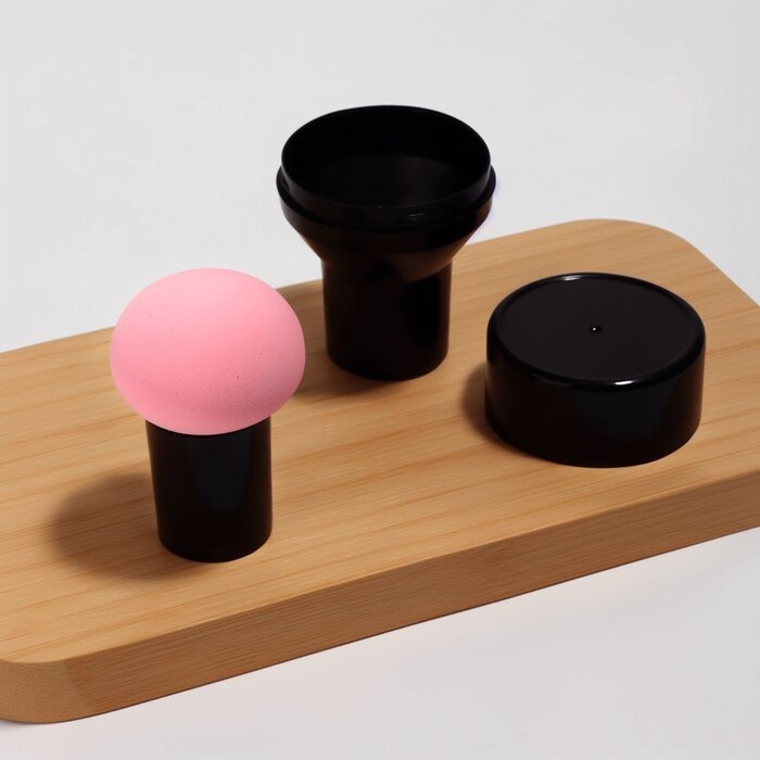 Спонж д/макияжа с ручкой d4,1*3см/4,5*6,5см пласт футл чёрн/роз пакет QF 7621102 интересное: