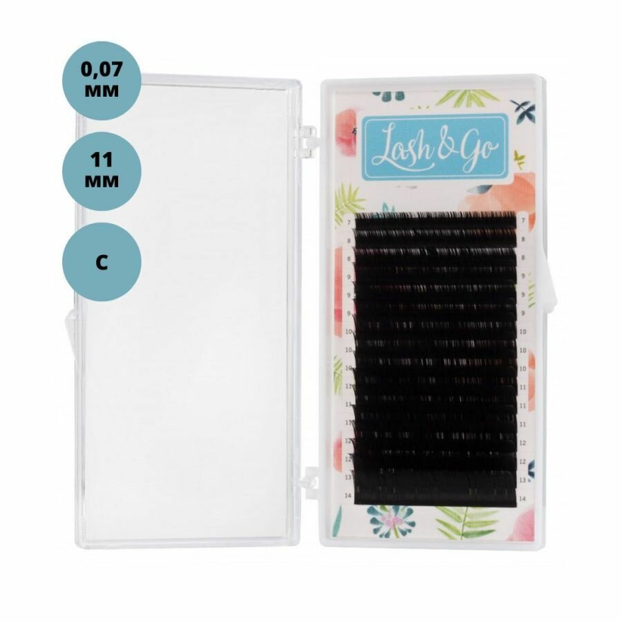 Купить Черные ресницы Lash&Go C 0.07 11 мм одна длина (16 линий)