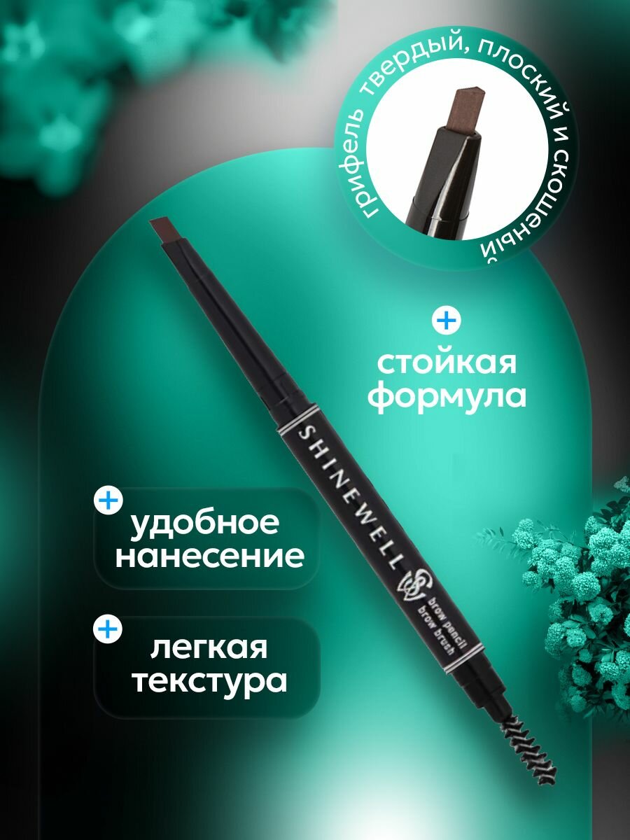 SHINEWELL Карандаш для бровей со щёточкой для придания формы, автоматический, цвет тёмно-коричневый, 14 г