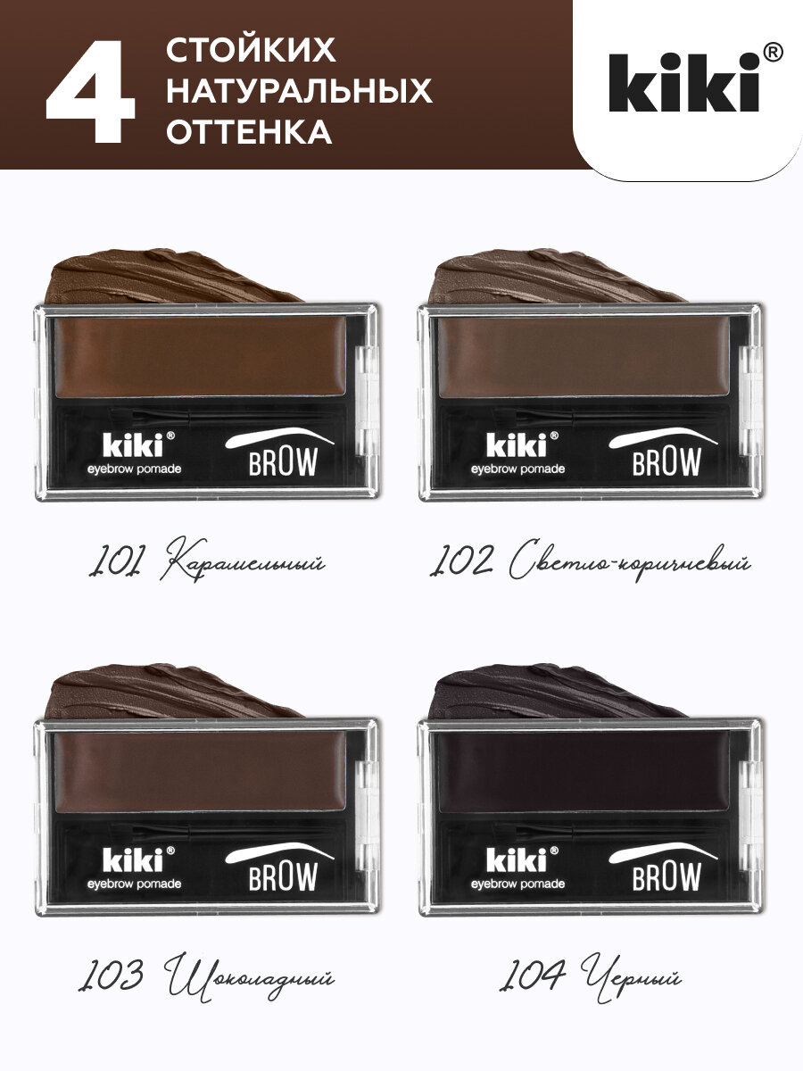 Купить Помада для бровей с кисточкой kiki EYEBROW POMADE тон 104 черный кремовая стойкая перманентная помадка микроблейдинг