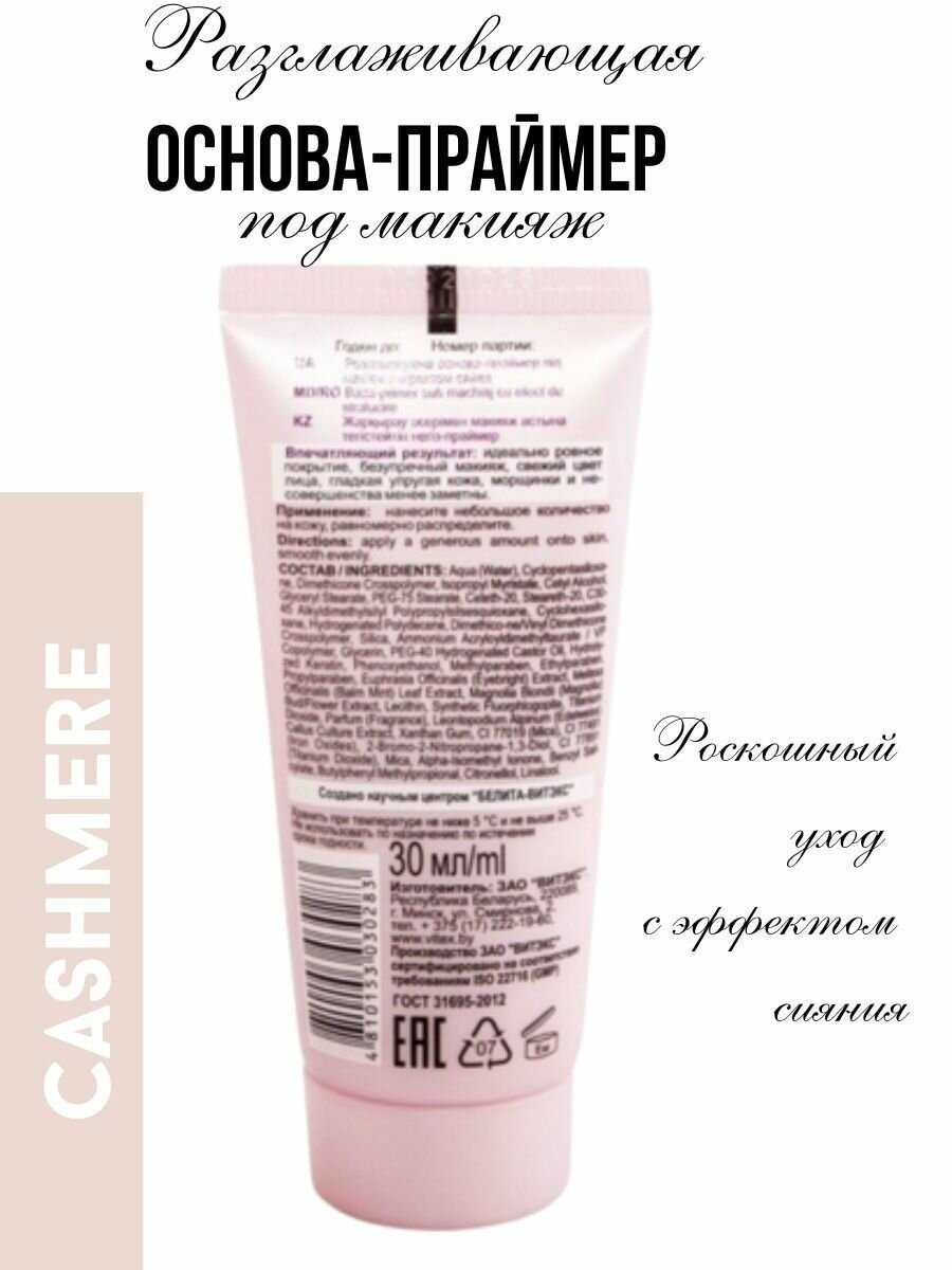 Основа праймер разглаживающий под макияж с эффектом сияния Cashmere 30 мл Витэкс
