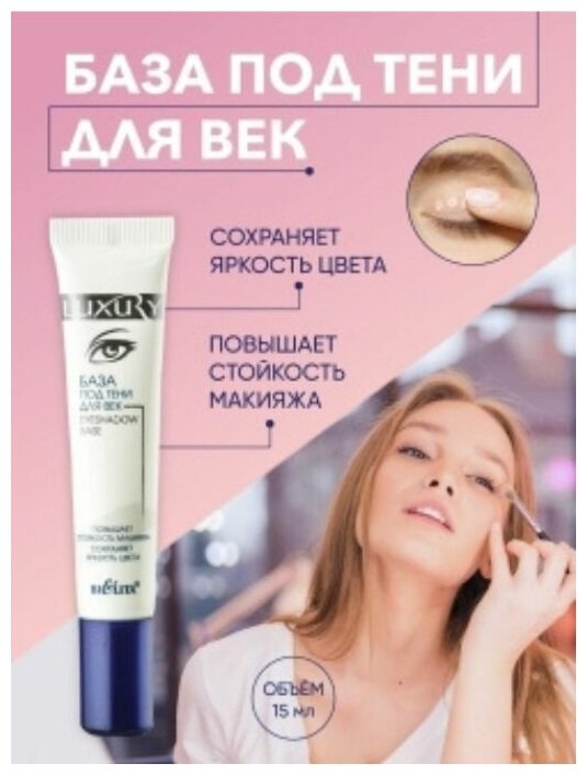 Ниже Вы можете прочитать отзывы на Bielita База под тени для век Luxury 15 мл, ознакомится с подробными характеристиками, посмотреть интересные обзоры и фотографии на Bielita База под тени для век Luxury 15 мл.