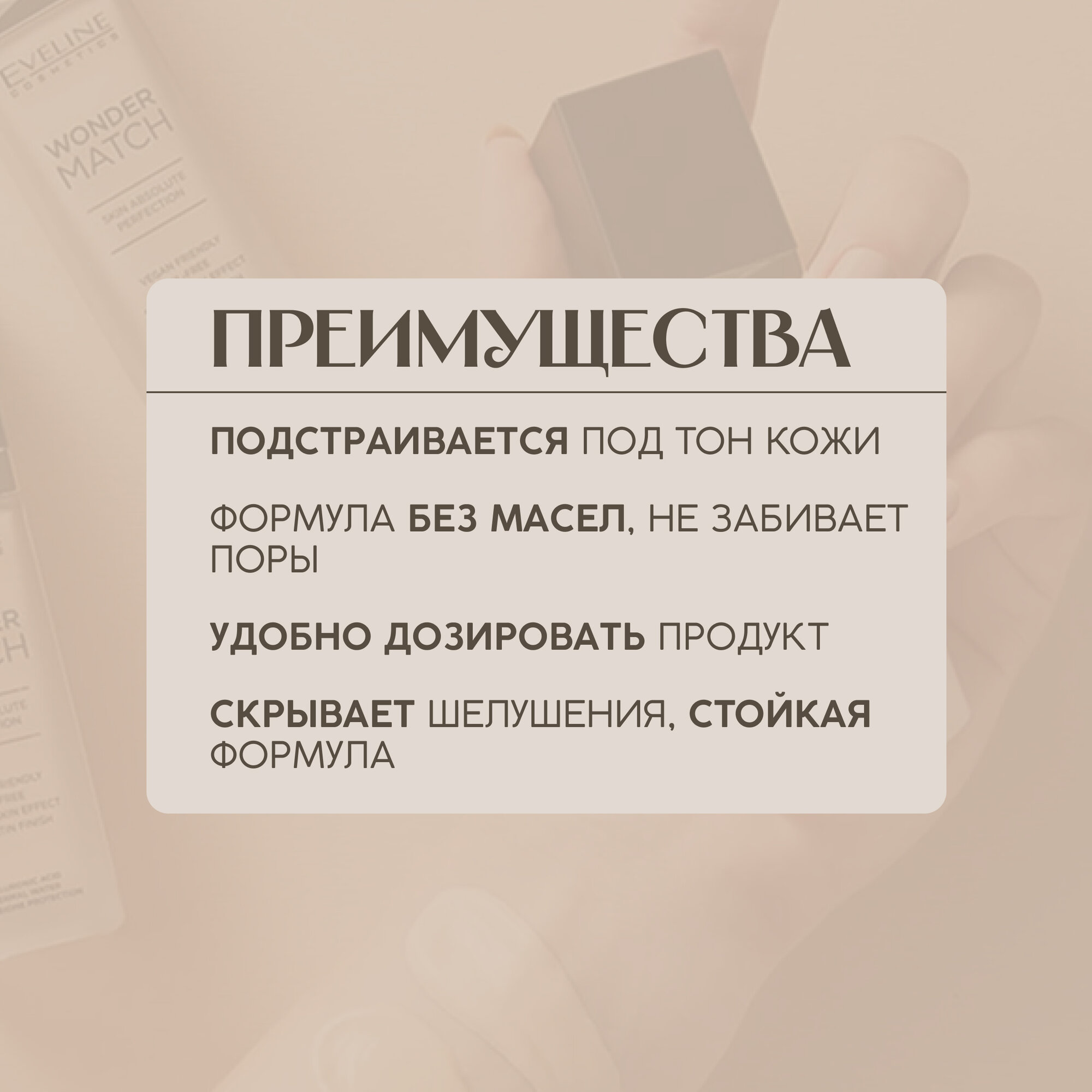 Адаптирующаяся тональная основа EVELINE WONDER MATCH тон 35 Beige, 30мл