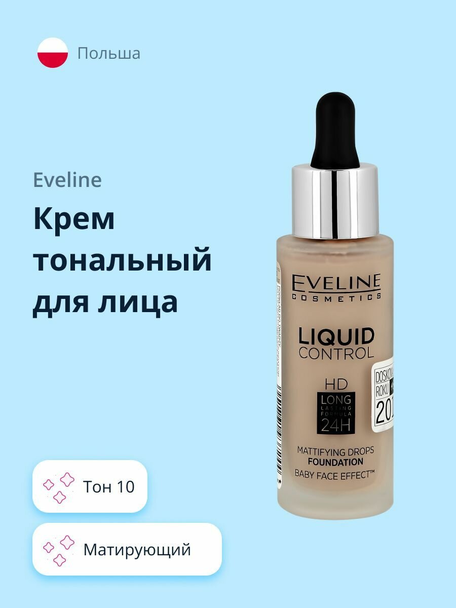 Купить EVELINE Крем тональный для лица LIQUID CONTROL тон 10 жидкий