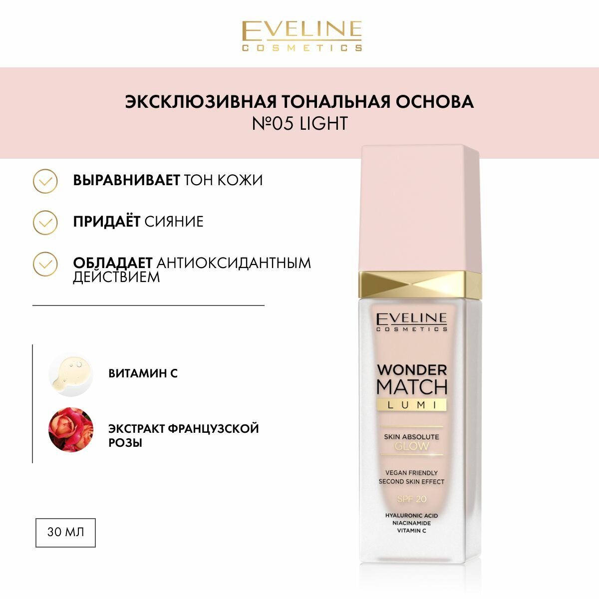 Тональная основа Eveline Cosmetics Wonder Match Lumi тон 05 light, 30 мл