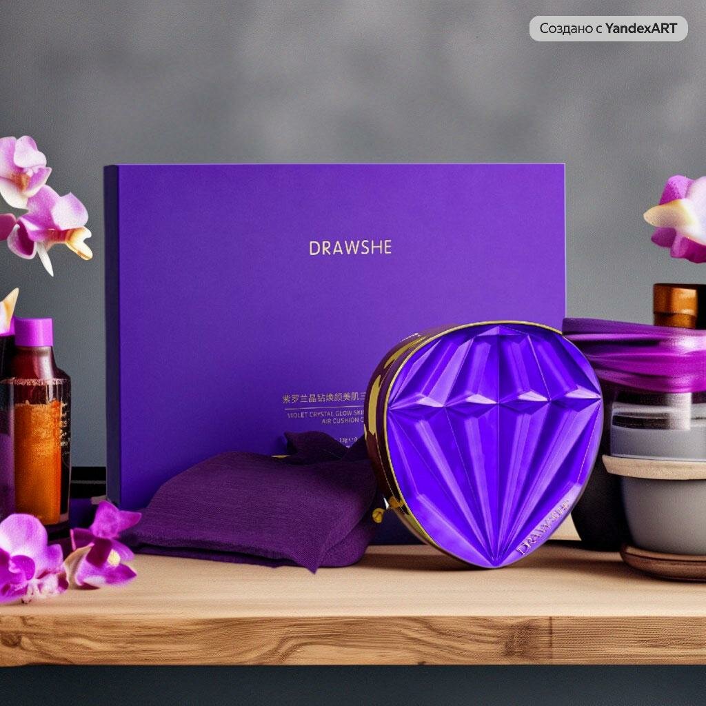 Купить Бриллиантовый крем-кушон для лица DRAWSHE 4 в 1 в подарочном комплекте, фиолетовый