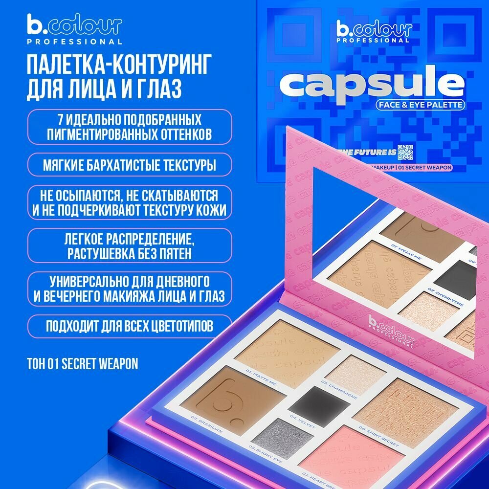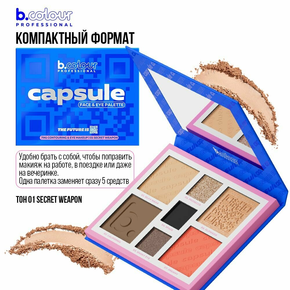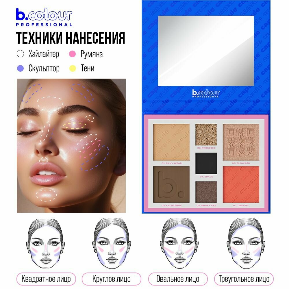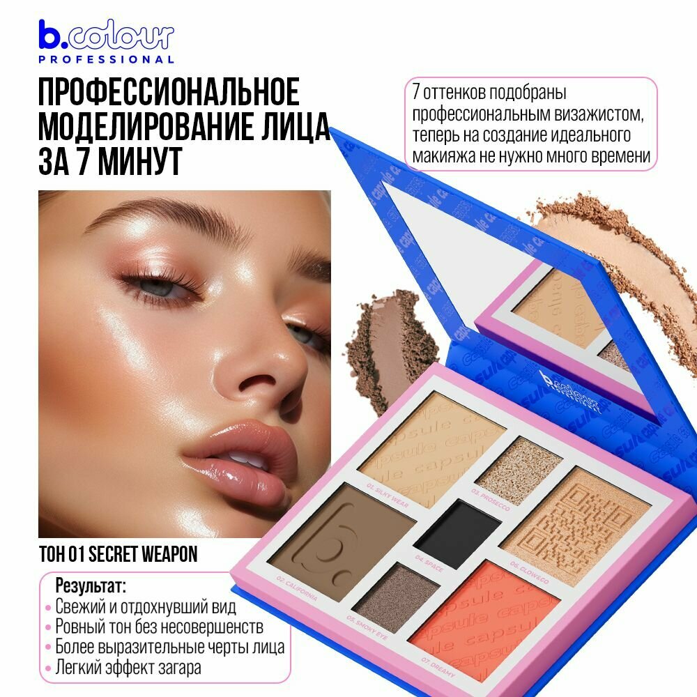 Румяна для лица, хайлайтер, пудра, тени для век, скульптор – палетка для контуринга B.COLOUR PRO CAPSULE 01 Secret weapon