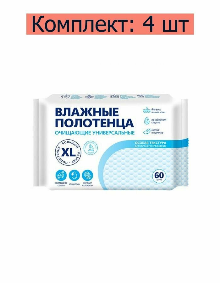 Купить Авангард Очищающие универсальные влажные полотенца, 60 шт, 4 уп
