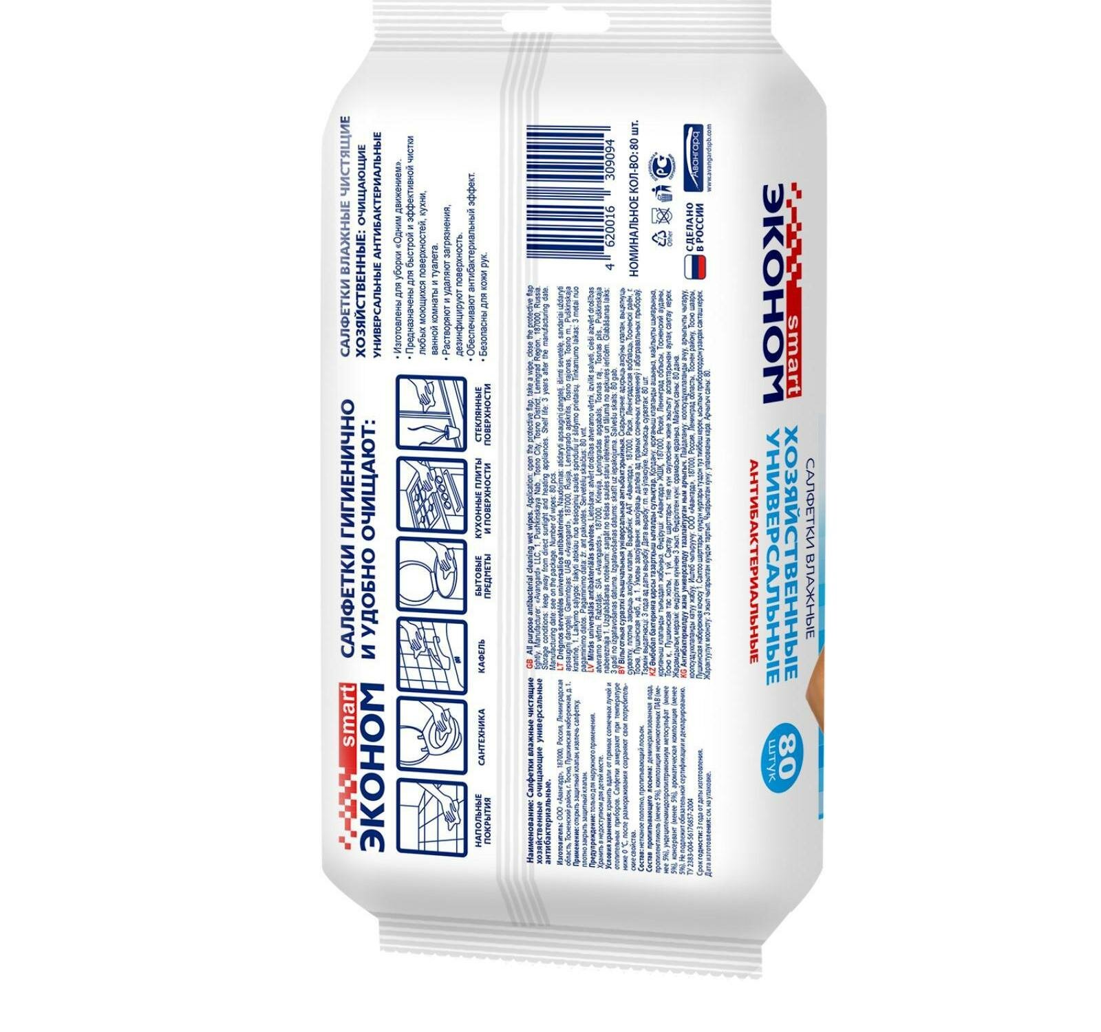 smart эконом Салфетки для уборки Антибактериальные влажные 6в1, 80 шт интересное: