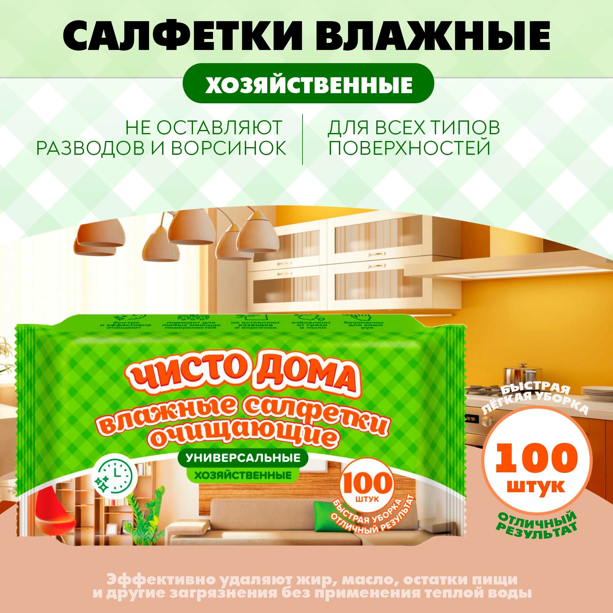 Салфетки влажные чисто дома Универсальные Хозяйственные 100шт