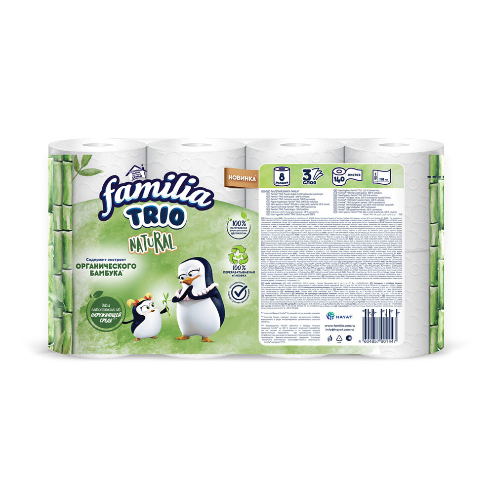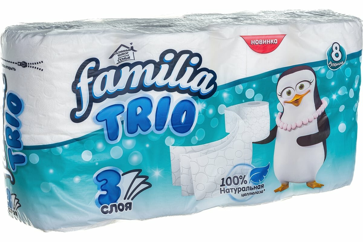 Туалетная бумага Familia Trio, 3 слоя, 8 рулонов