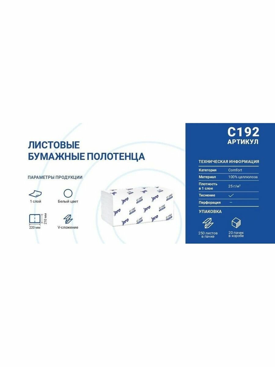 Полотенца бумажные листовые PROtissue С192 V, 1 сл, 250 л, 1 пачка, Comfort