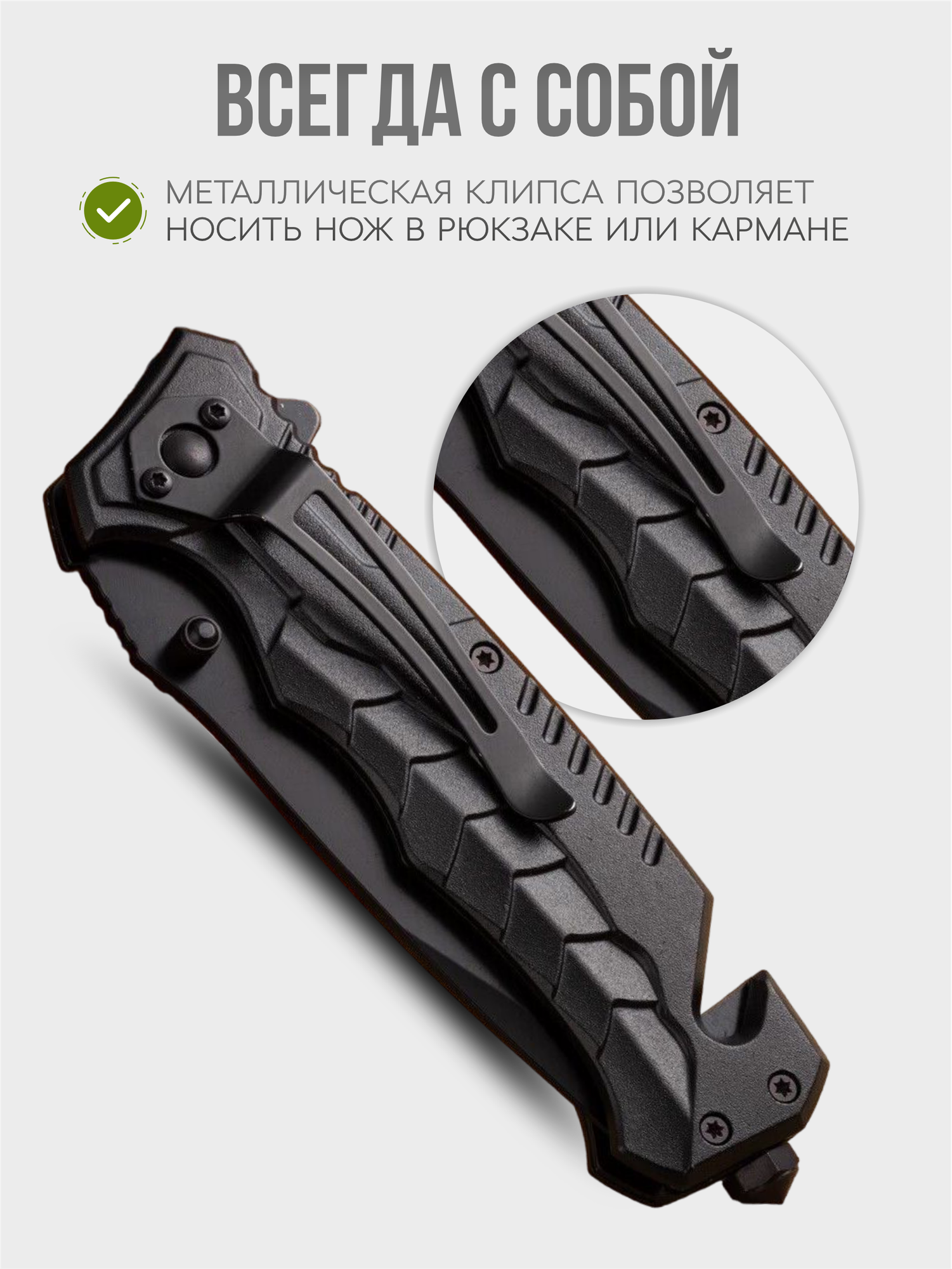 Нож складной тактический, со стропорезом и стеклобоем, цвет - черный интересное: