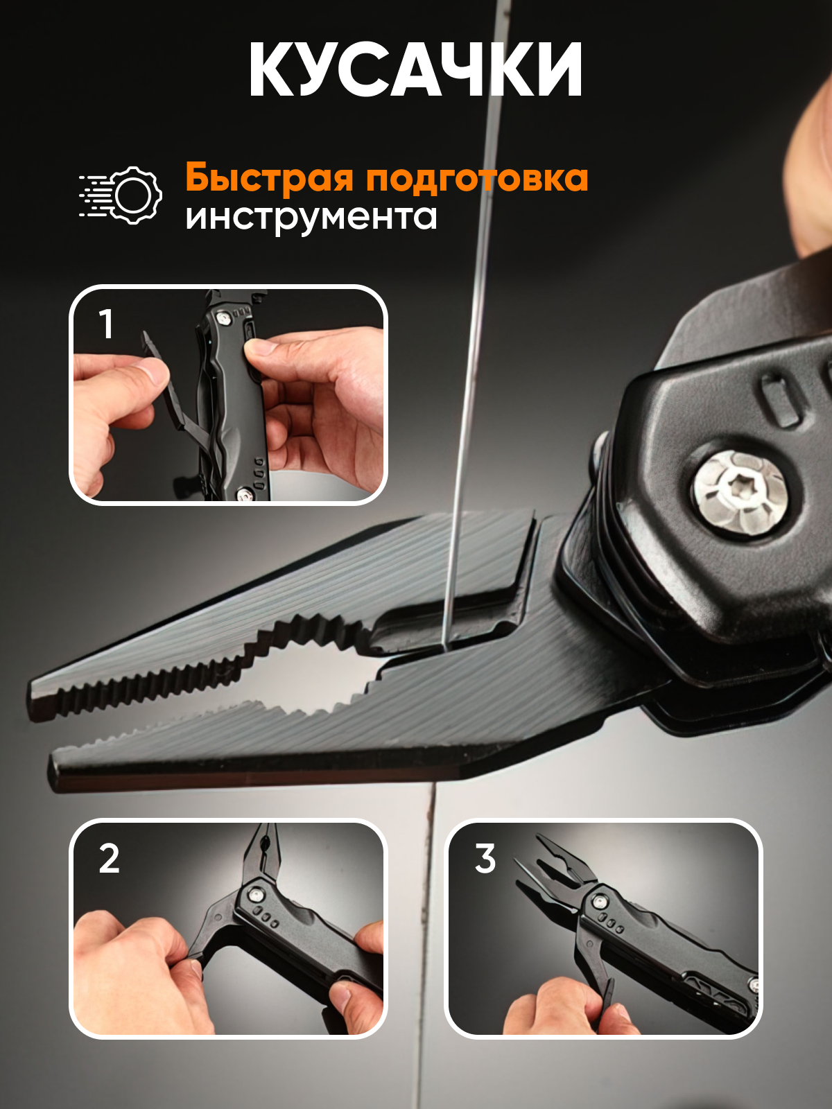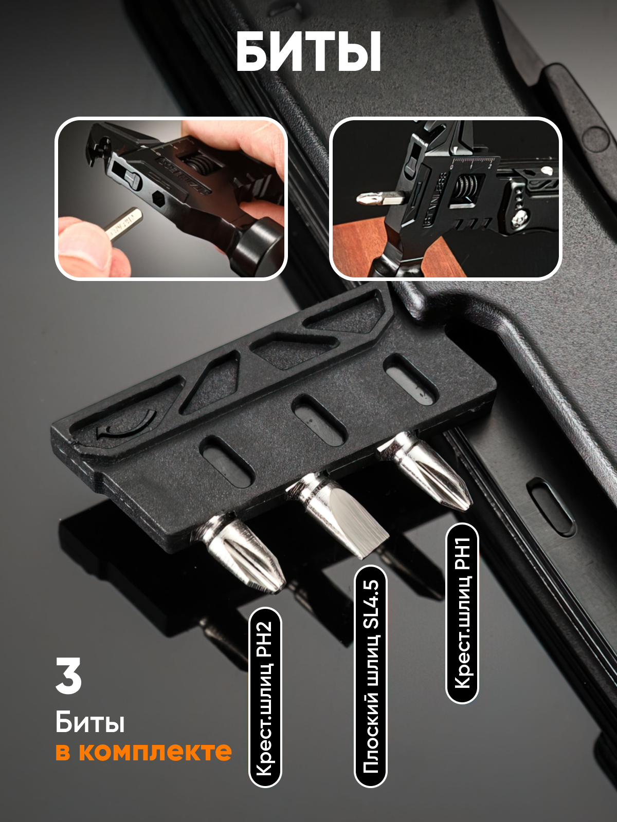 | Инструменты (функции) | гаечный ключ / кусачки / нож / открывалка для бутылок / сменные биты / стеклобой |