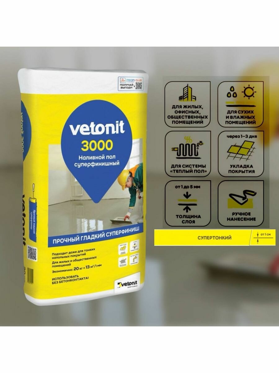 Вебер.ветонит 3000 суперфинишный наливной пол (20кг) / WEBER.VETONIT 3000 суперфинишный наливной пол (20кг)