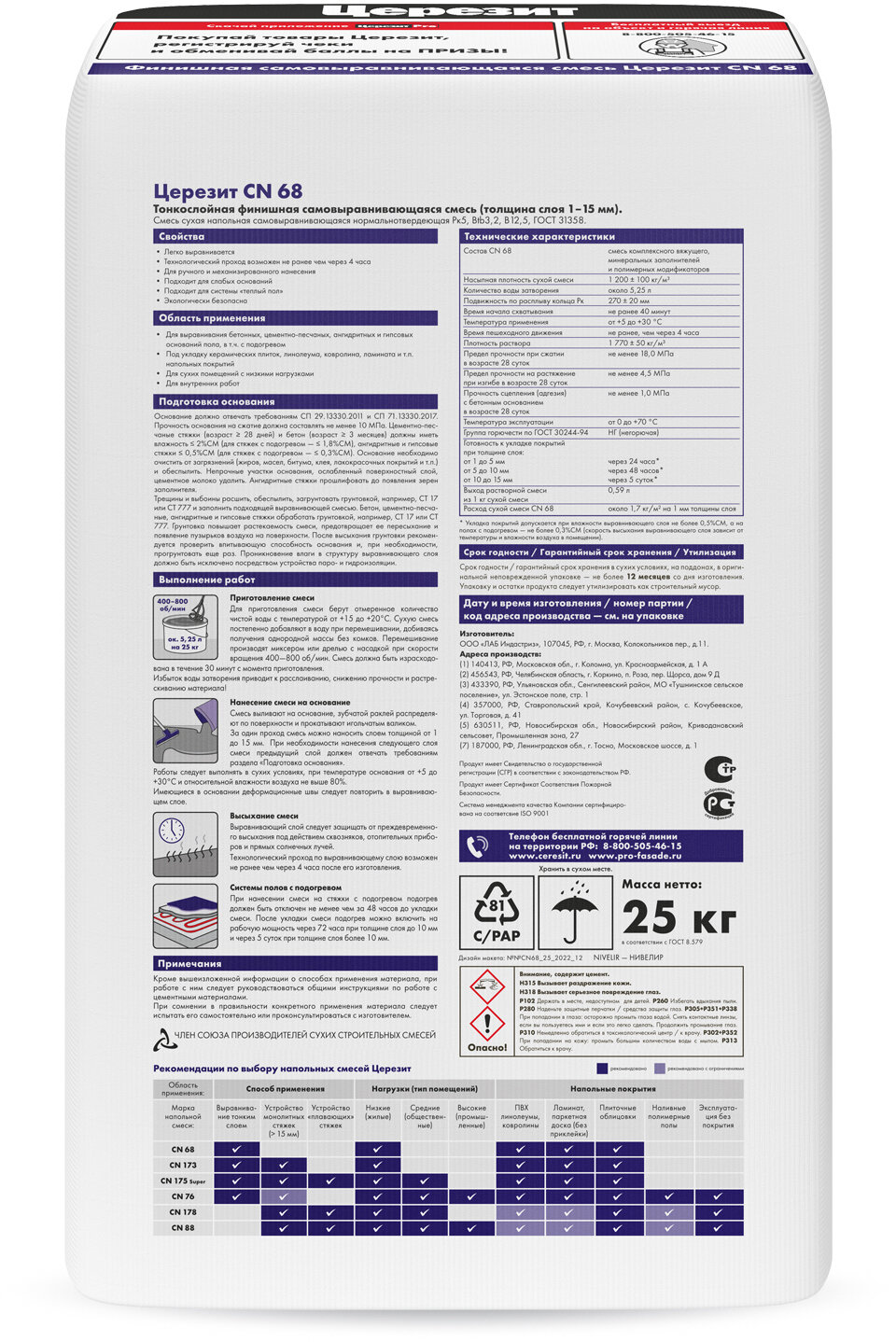 Церезит CN 68 Nivelir, фасовка 25 кг интересное: