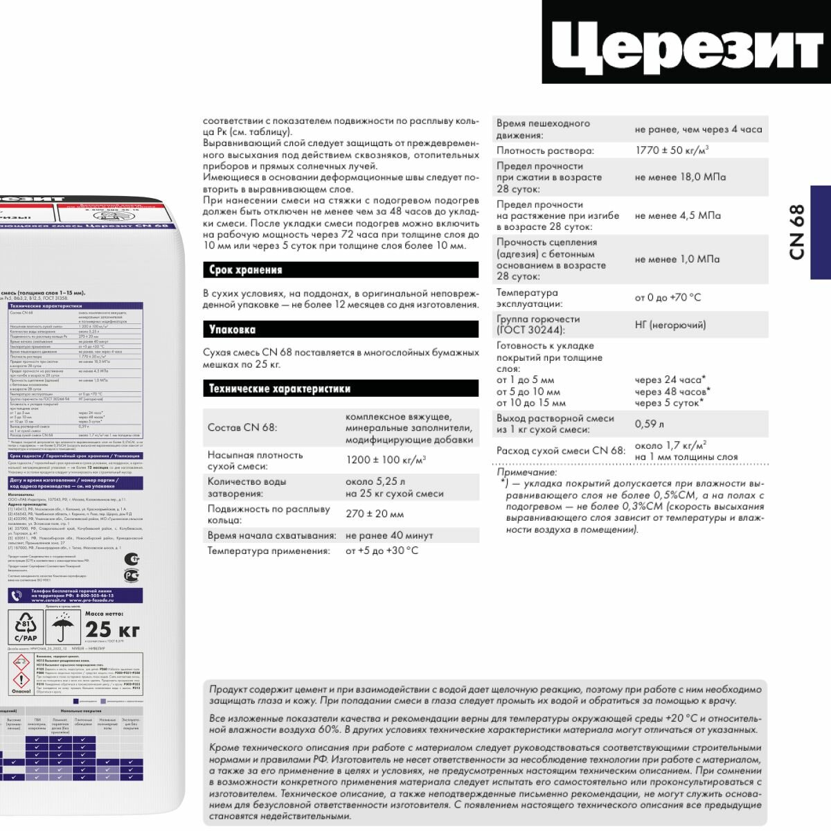 Церезит CN-68 финишный самовыравнивающий пол (25кг) / CERESIT CN68 тонкослойная самовыравнивающаяся смесь (25кг)
