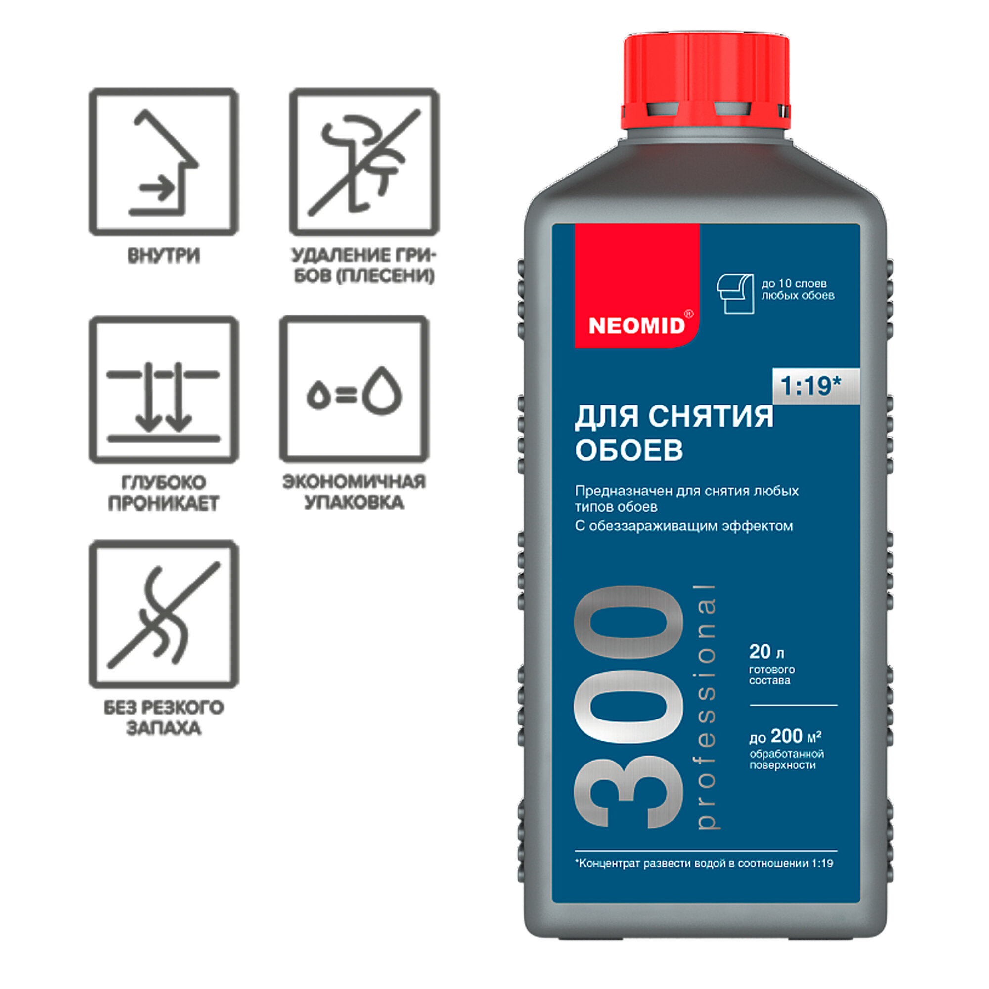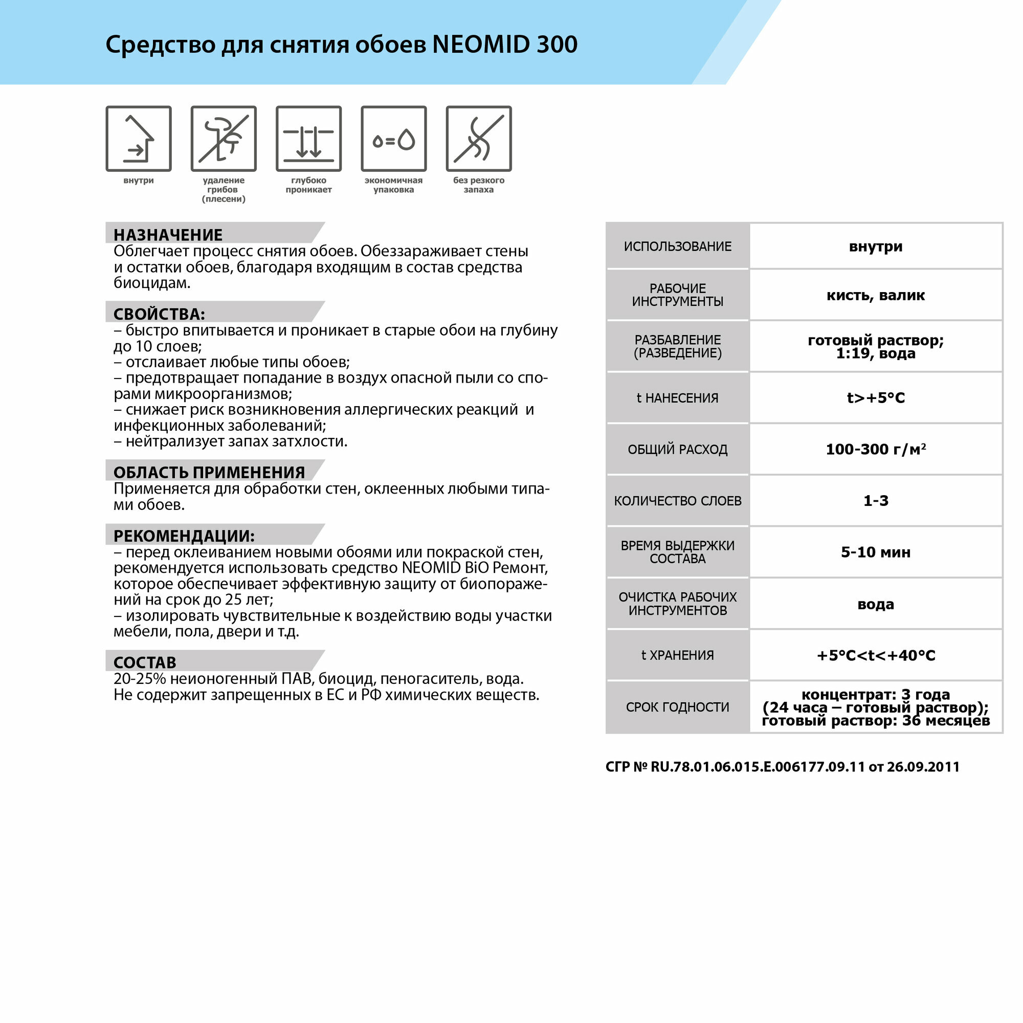 Средство для снятия обоев Neomid 300 концентрат 1:19 (1л) интересное: