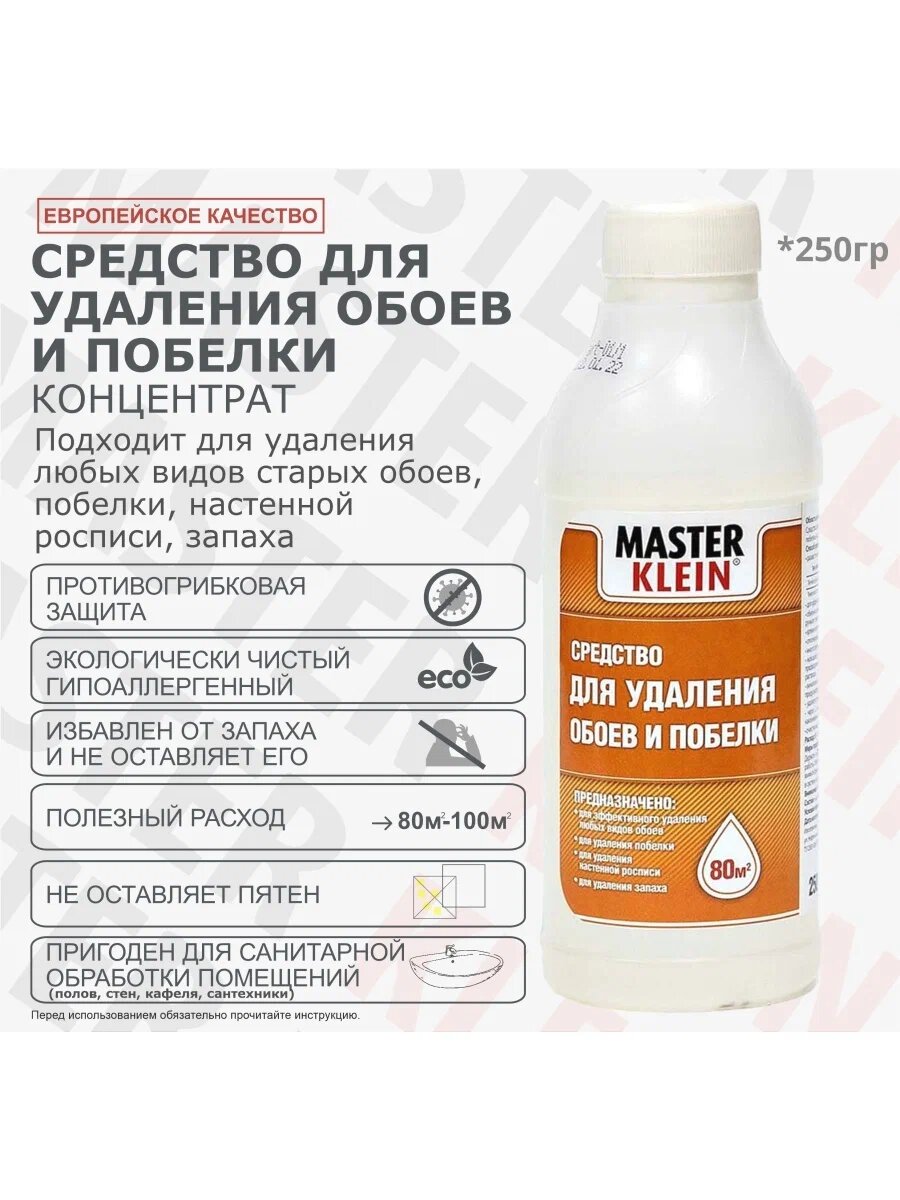 Средство для снятия обоев и побелки "Master Klein" 250грамм концентрат интересное: