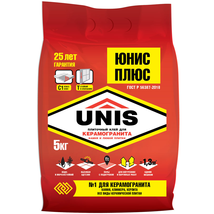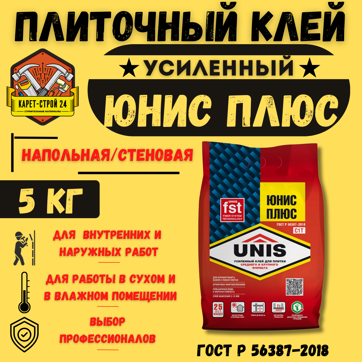 Юнис Плюс клей плиточный (5кг) / UNIS Plus клеевой состав для керамической плитки, керамогранита и камня (класс С1Т) (5кг)